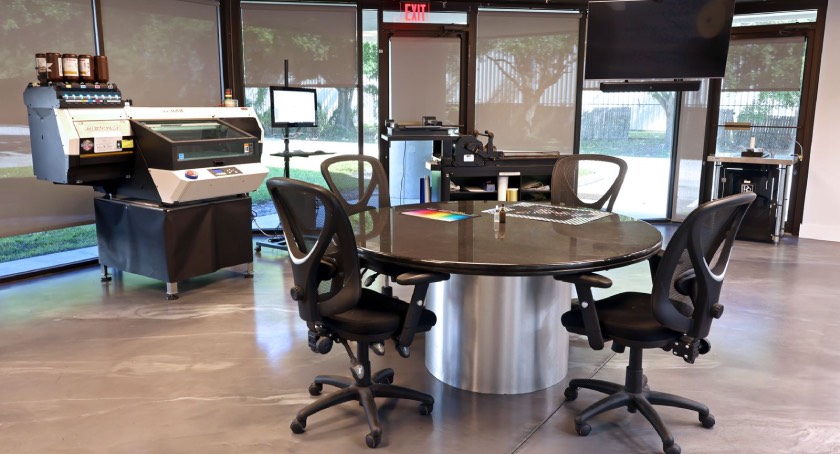 Our goal with this space is to help decision-makers make the best possible decision for their product without sacrificing branding, style, and design: finding a holographic design that complements the design rather than seeming like an afterthought, or one that overtakes and fights the design. Like many things now, we can help clients digitally (i.e., email, video call, phone call, etc.), but we really encourage everyone to visit our space; minimally decorated, calm, open, inviting of inspiration, thoughtfully designed, the space is one of my favorite places in our offices. I personally feel calm and inspired when I walk in, even now, 4 years later.